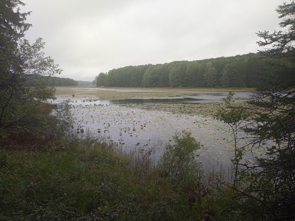 After much debate, we decided to drive to Black Moshannon State Park which is about 30 to 40 minutes from the Russell P. Letterman campground. Black Moshannon State Park includes 3300+ acres of land, which is surrounded by the vast, 43,000 acre Moshannon State Forest. The far-reaching forests make the park feel secluded and remote. As we entered the park and pulled up to the park office, the small lake caught our eye. It was a long, narrow lake that was covered in aquatic flora. The lake is a mere 250 acres compared to the 1700-plus acre lake at Bald Eagle. But it was charming. The lake was inviting for kayaks and canoes, and the paddling pups who enjoy them.